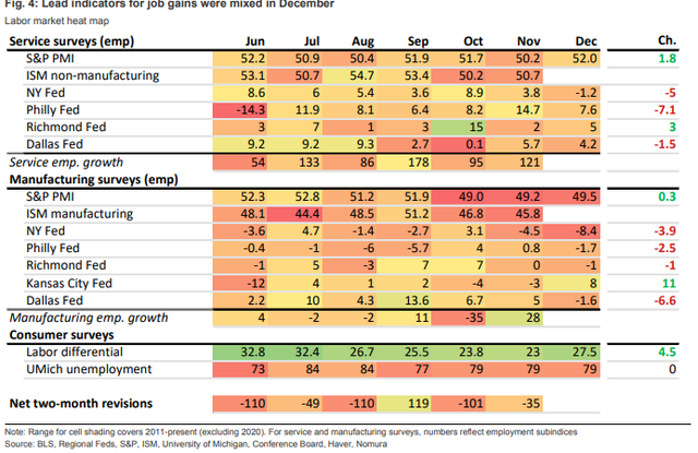 12月份的ISM制造业调查显示,就业指数48.1仍处于收缩区间,但较前值45.8有所上升,创下三个月新高;